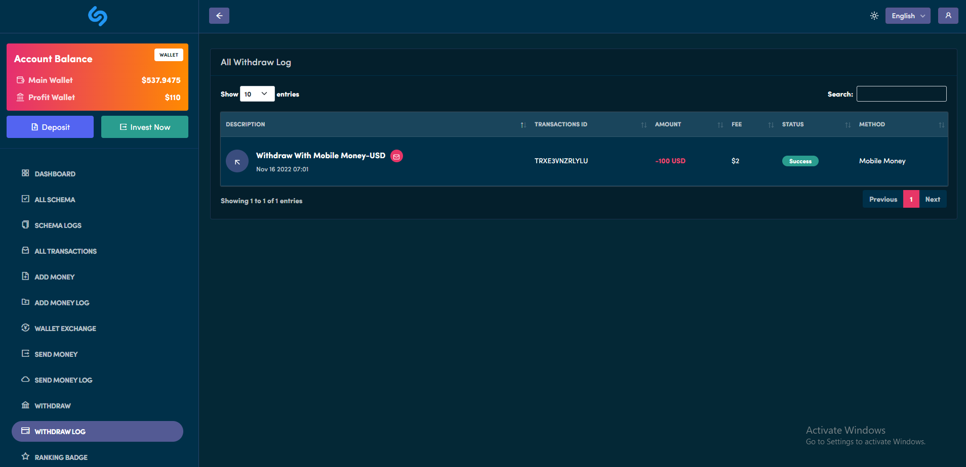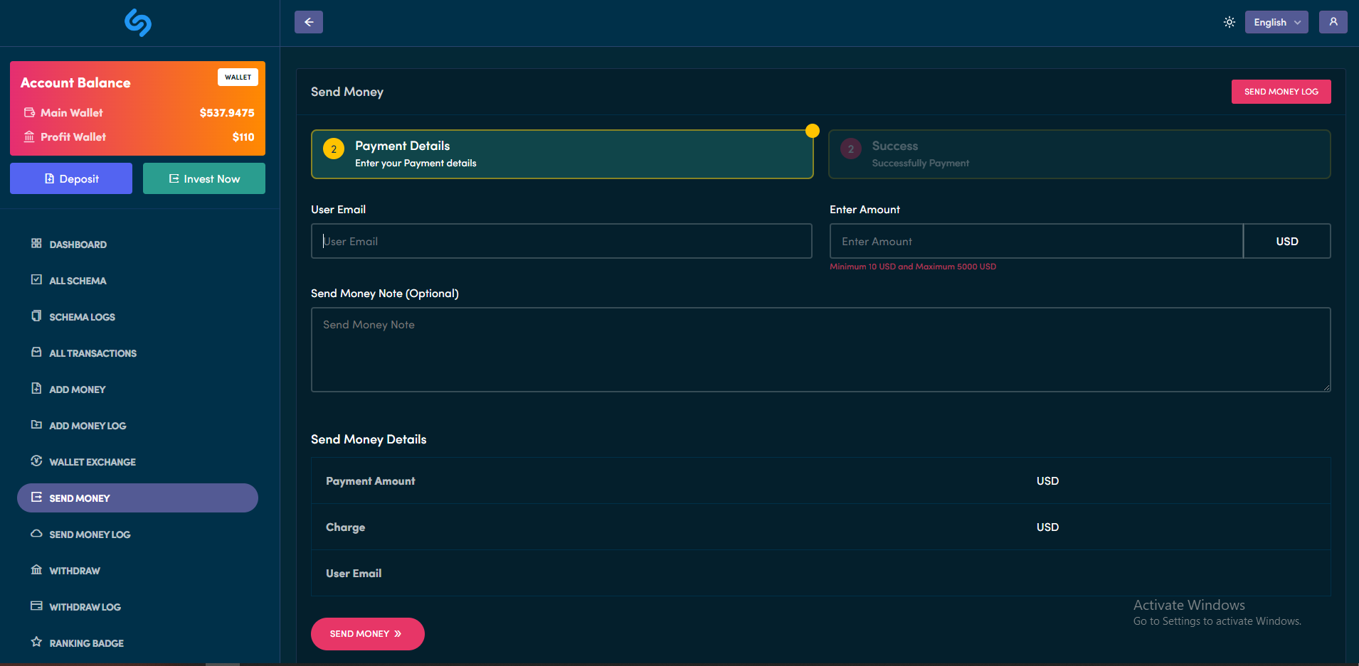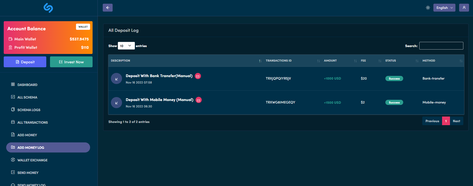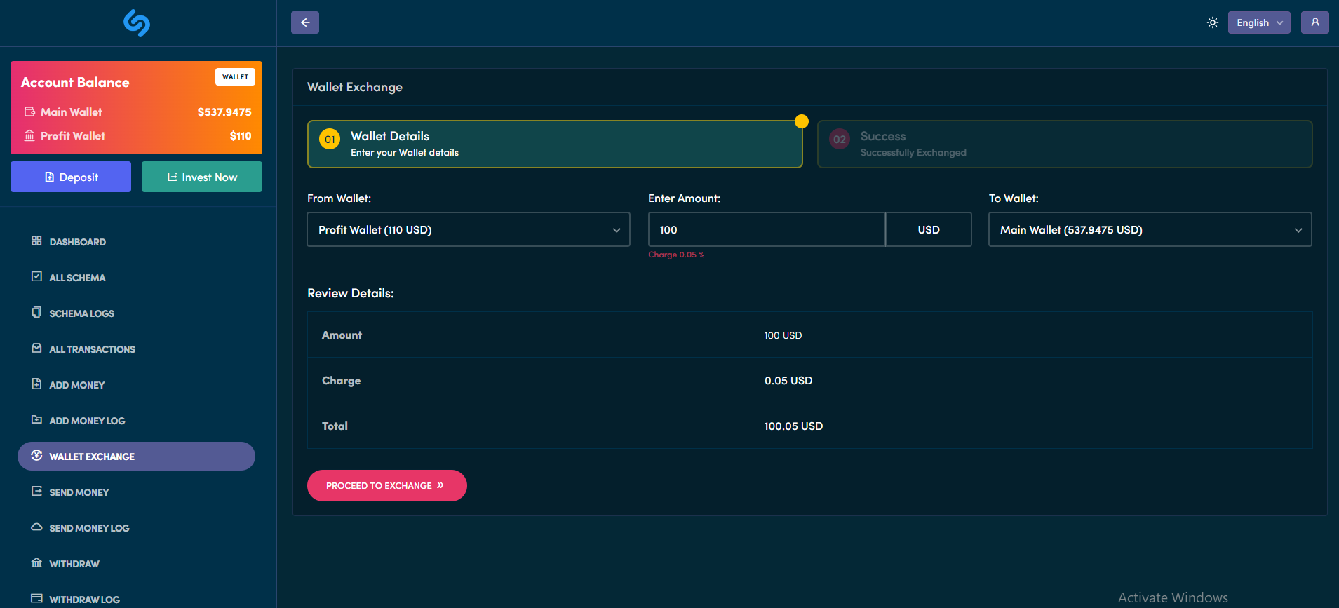 In the dashboard sidebar there are two wallets one is the Main and amount one is the profit wallet. There