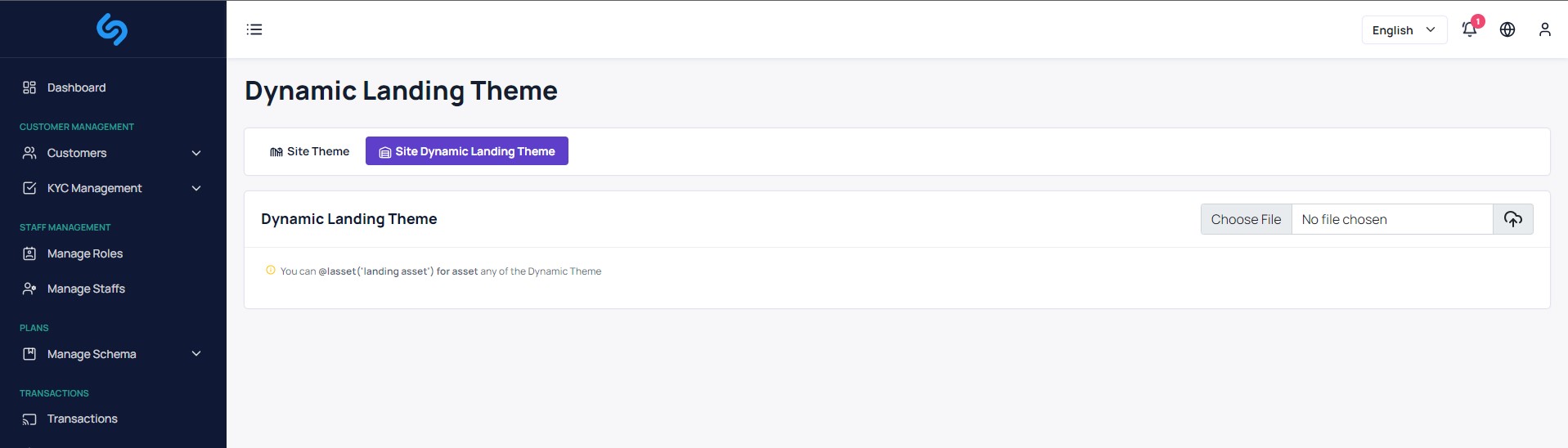 Admin can upload any html template here and need to put @lasset('landing asset') on all the assets.