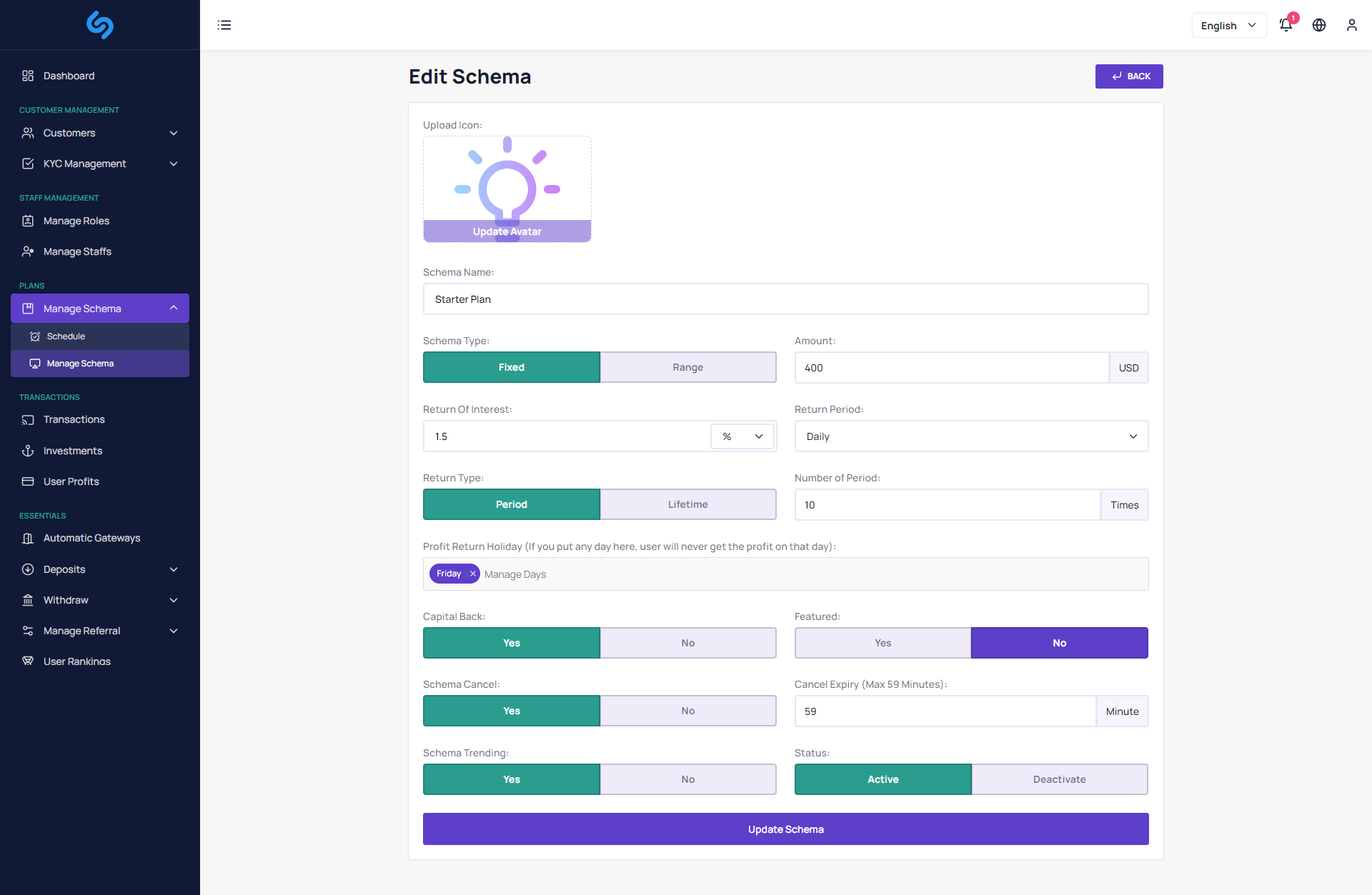 register to the application and can deposit to the account and can Invest in any of the Investment Plans