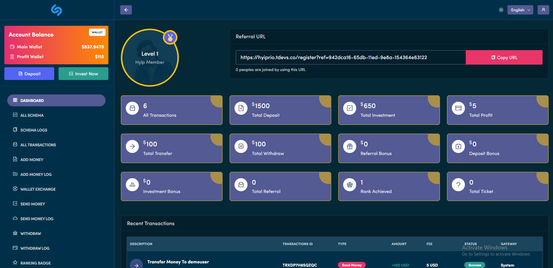 Hyiprio - Advanced Hyip Investment Scheme with Ranking System