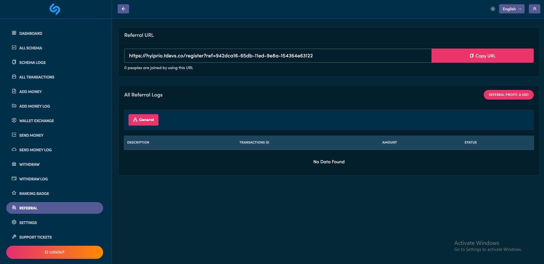 this page, users can also see the Ranking Level with Badge and Referral Links. Also, users can explore