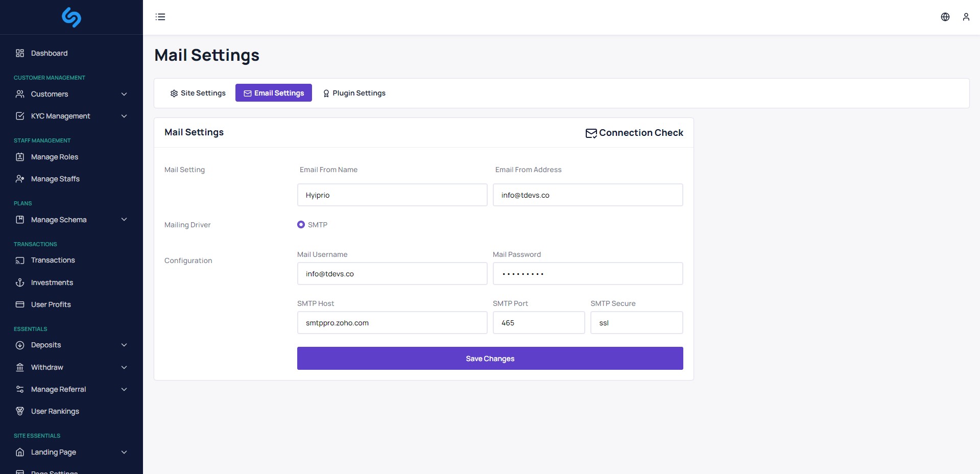 settings can be handled by the admin. In the email settings, the admin can set the mail configurations.